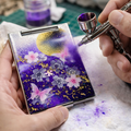 このミラーの最大の特徴は、エアブラシ等の工具を駆使して生まれる「七宝焼風」のぷっくりとした立体感です。幾重にも彩りを重ね、丁寧に磨き上げることで、まるで宝石のような奥行きのある光沢と質感を実現しました。プリント品にはない、手作りならではの「重厚感」と「ぬくもり」をその手でお確かめください。