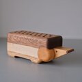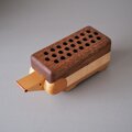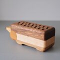 穴の位置や深さが中央と外側で違うため、機能的な取り出しや収納を実現しています。