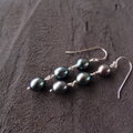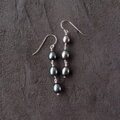 【SV】Three Dots Earrings/3粒パールピアス(Black)