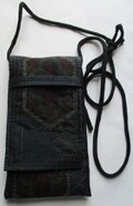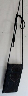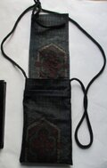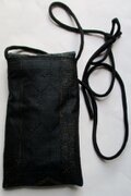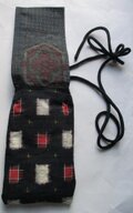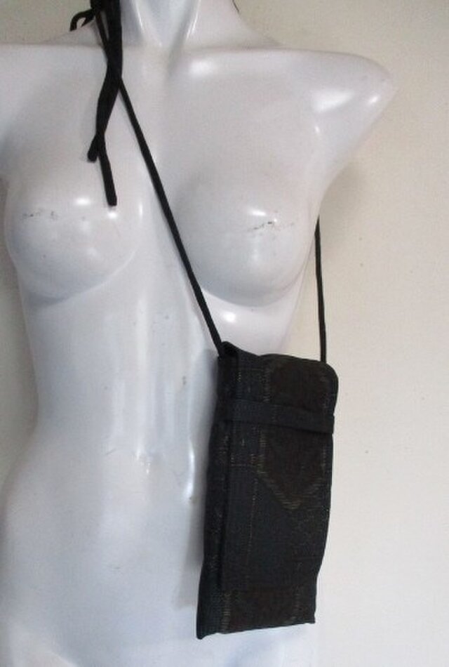 提げベルト代わりに、正絹の黒の着物で作ったループを付け、途中で結んで提げる様にしています。