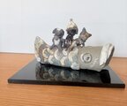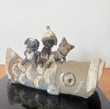 五月に向けてこいのぼりをモチーフに猫と犬がこいのぼりにまたがっております