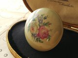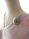 ヴィンテージ 薔薇と勿忘草、小花達の陶器製ブローチ