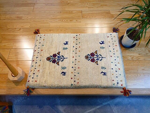 近場で売っているギャッベのマットよりもずっと 厚みがあり、座っていて気持ちいいです