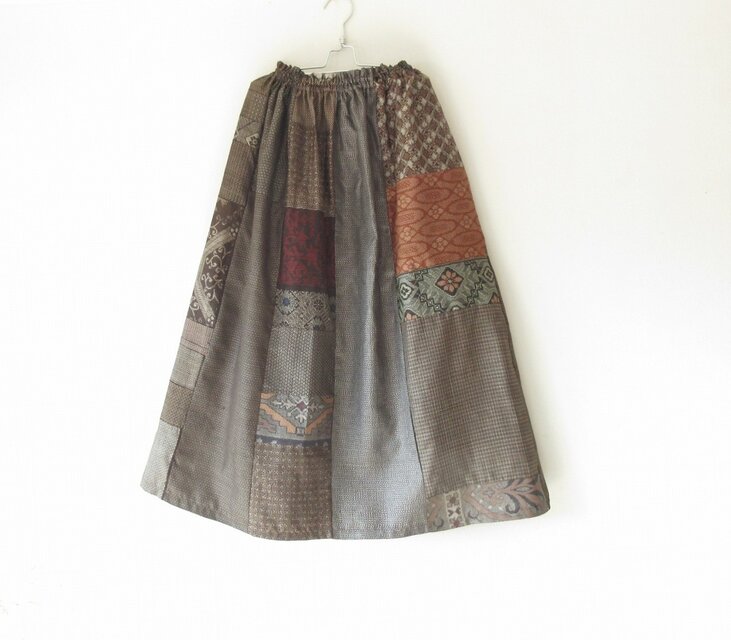 ・色々な大島紬をたくさん集めて裾パッチワーク 大島紬 シルク100%