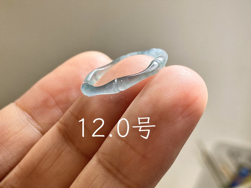 L17-57 アニバーサリーリング 細身 氷種 12.0号 薄グレー青色 竹節 リング グアテマラ産 A貨 本翡翠 くりぬき