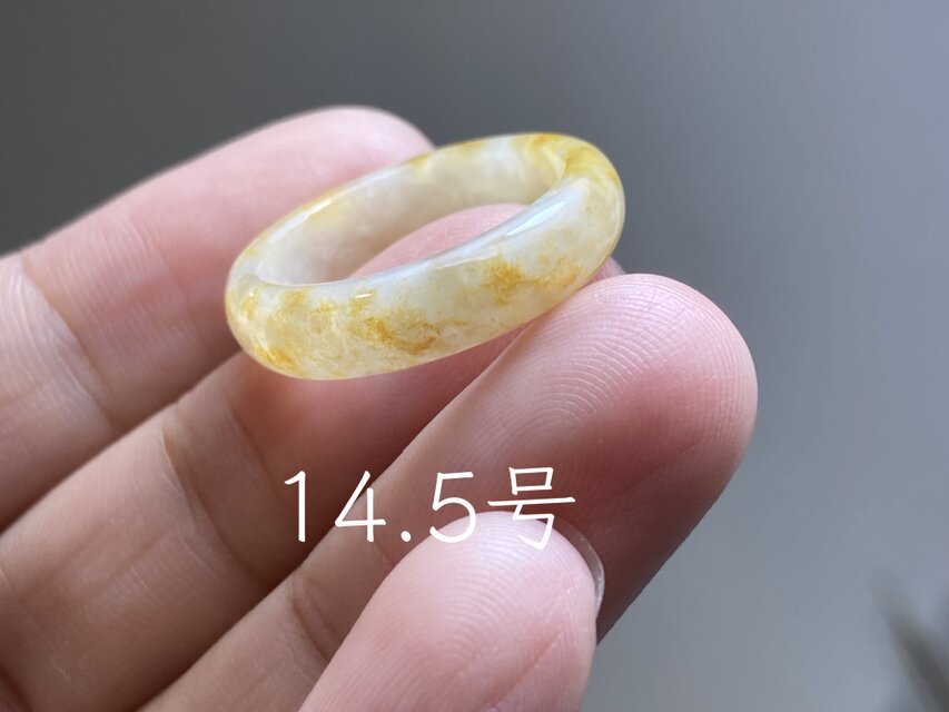 L17-65 氷糯種 黄翡翠 14.5号 ミャンマー産天然 A貨 本翡翠 くりぬき リング
