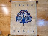 ベージュ地に、見事な孔雀が描かれる、玄関サイズの一枚のご紹介です♪