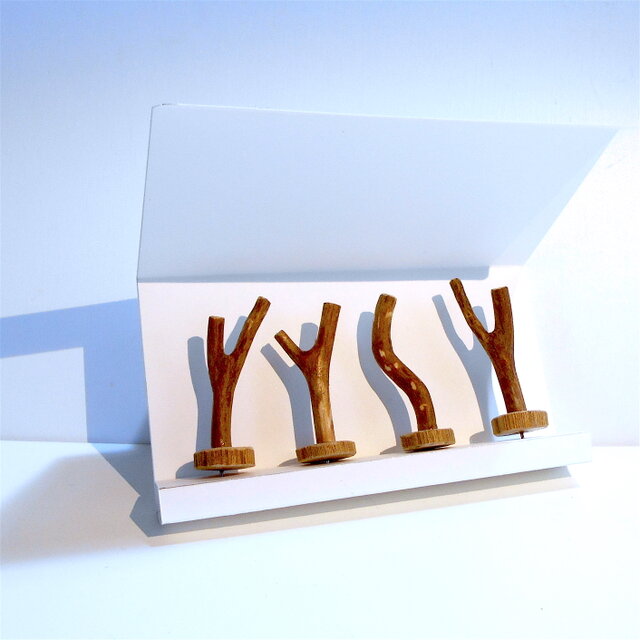 そばに置きたいちょっとした小物をこのミニハンガーを壁に刺して使うピン型ハンガーです。