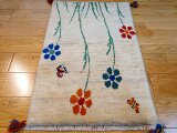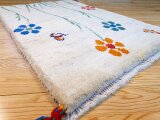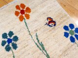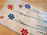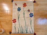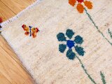 商品名: ペルシャ ギャッベ アイボリー 花々 蝶 RJ14230