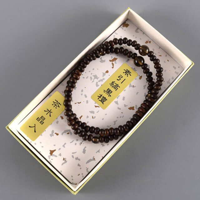 5mm 素引き縞黒檀 茶水晶仕立て 二重巻 108玉 腕輪 ブレスレット 数珠 京都 UDA236