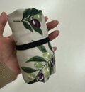 ゴムを縫い付けてありますので、小さく畳んで持ち運びできます。