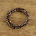【5mm 素引き縞鉄刀木 茶虎眼石仕立て 二重巻 108玉 腕輪 ブレスレット】