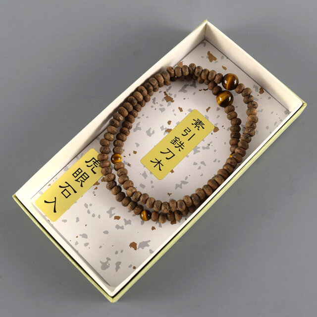 5mm 素引き縞鉄刀木 茶虎眼石仕立て 二重巻 108玉 腕輪 ブレスレット 数珠 京都 UDA237