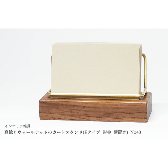真鍮とウォールナットのカードスタンド(Eタイプ 彫金 横置き) No40