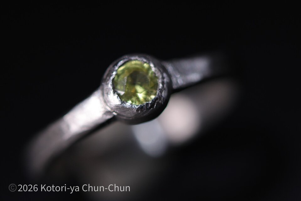 イメージは黄色っぽいペリドットからマリガーネットのような黄色に変化するイメージです。ただし弱変化なので結構本気で色が変わることを知っている上で気をつけないと変化に気づけません(´ω`;)