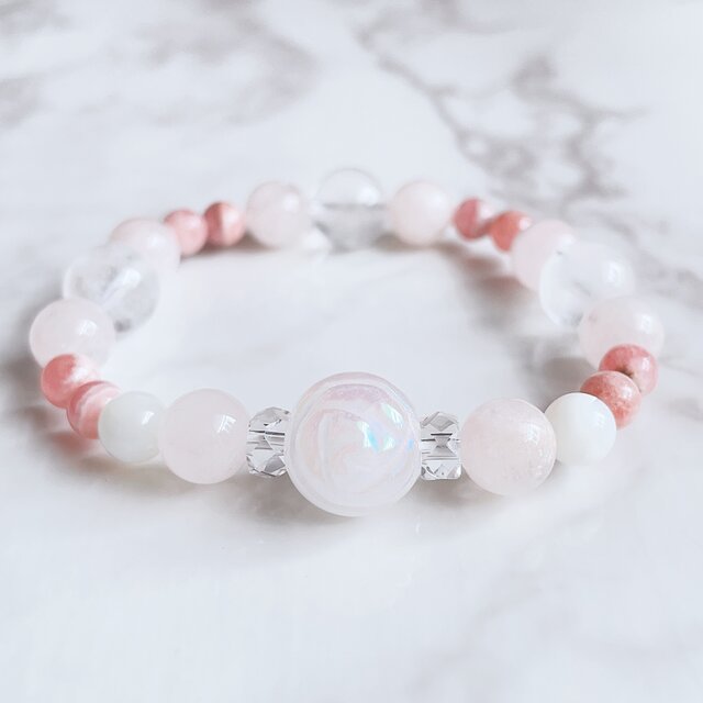 ✦自分を一番の味方に。自己受容と癒しの天然石ブレスレット|ローズクォーツ・インカローズ・モルガナイト No.876