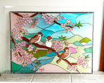 #満開の桜 #雀 #春の訪れ #グラスアート #ステンドグラス風 #ハンドメイド #インテリアアート