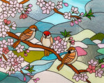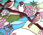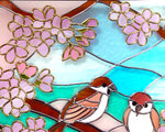 雀が集う桜のハーモニー ステンドグラス風アート