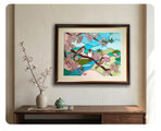 この作品は、日々の喧騒から離れ、穏やかな時間を過ごしたい方にぴったりです。忙しい日々の中でも、ふとした瞬間に目に入るこのアートが、心に安らぎをもたらしてくれるでしょう。特に春の季節のインテリアとして、リビングや寝室、さらにはオフィスのデスク周りに飾るのがおすすめです。