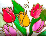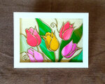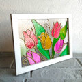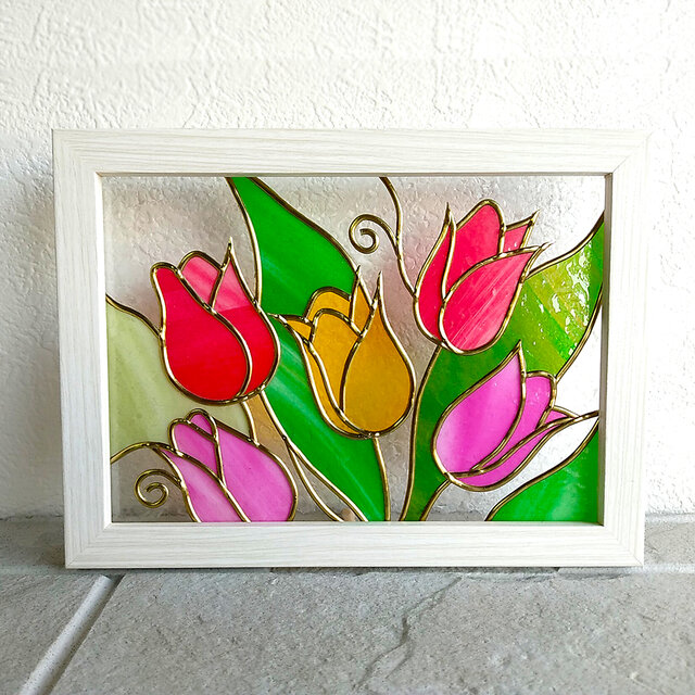 カラフルチューリップの額飾り 春の花暦フレームアート ステンドグラス風