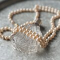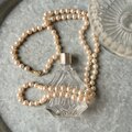 シルキーベージュ系のグラスパールネックレス。