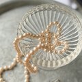 グラスパールならではの重みとプラスチックパールよりも適度な重さがあり、表面もキメ細かく、より美しい輝きと微妙な色合いが特徴です。 繊細な美しさがあるため高級感が感じられます。