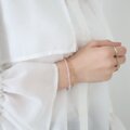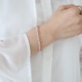 また、繊細なペタルチェーンの組み合わせが手首の華奢見せも叶うブレスレット。