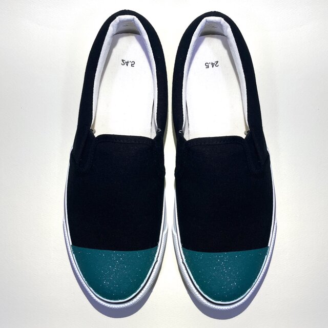 バイカラースリッポン (ブラック x グリーンラメ) 撥水加工ver. 22.0cm〜29.0cm