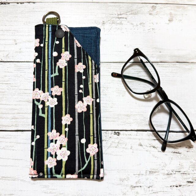 ソフトメガネケース 【和柄・竹と梅のストライプ】