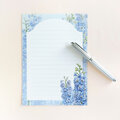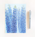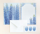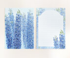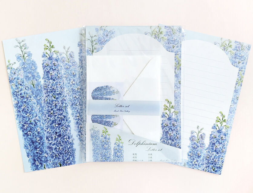 一本立ちの青いデルフィニウムを描いた透明水彩画をもとに作ったレターセットです。