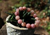 名称はオレンジストロベリーとありますが、オレンジというよりは赤に近い、まさしくストロベリー色。鱗のようにも見える赤い斑点が、愛らしい大粒のレピドクロサイトです。