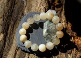 陰と陽、どちらの波動も併せ持っています。月のように穏やかな波動で直観力や洞察力を与え、太陽のような温かな波動で活力を与え、勇気、希望、明るさを与えてくれるといわれています。この両極端な二つの波動は、持ち主の状態に合わせて、そのとき必要なエネルギーでサポートしてくれます。ただ、月の満ち欠けと強く関係があるので、満月に着けるとパワーが強くなりすぎる場合があります。