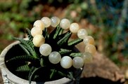 全体的に白っぽいのですが、透明感もあり、ところどころに美しい虹色のシラーが浮かび上がります。虹色の美しい輝きは幸運を呼び込むといわれています。粒によって、淡いピーチの色合いも見られます。
