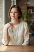 明るいターコイズカラーのエンドレスロングネックレス Y-2152