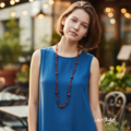 エンドレス仕様で金具はありませんが、ところどころにメタルビーズを使用していますので、金属アレルギーの方には おすすめできません。