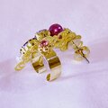 三日月の透かしパーツにパールとガラスストーンを付けて豪華に仕上げました