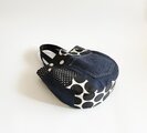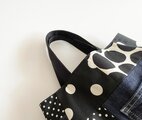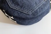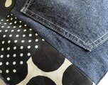 デニムやドット生地でパッチワークしています。