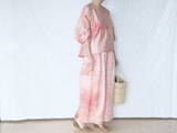眩いほどにシャイニーなサーモンピンク。画像では分かりにくいですが、波打つ地模様の綸子地です。
