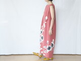 ひとつながりの絵羽模様が最も映えるよう、ギャザーや切り替えのないシンプルなマキシワンピースに仕立てました。