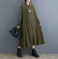 ★ビッグサイズ ワンピース レディース 長袖 シャツワンピース ゆったりシルエット 体型カバー 着痩せ 通勤 おしゃれ
