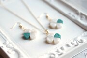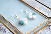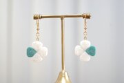 上品な光沢のあるモスグリーンと真珠色の組み合わせが爽やかで優しいピアス。