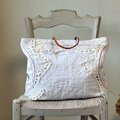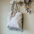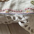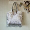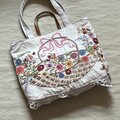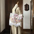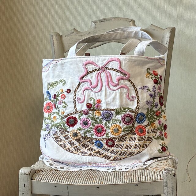 豪華なvintage刺繍*antique homespunlinen*花カゴ刺繍*大き目トートバッグ*手織りリネン*一点物
