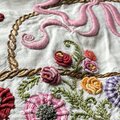 刺繍をした方の息吹が感じられるような素晴らしい花かご刺繍です。