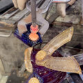 製作途中は、ガラスが高熱なので、道具を使用して成型しています。