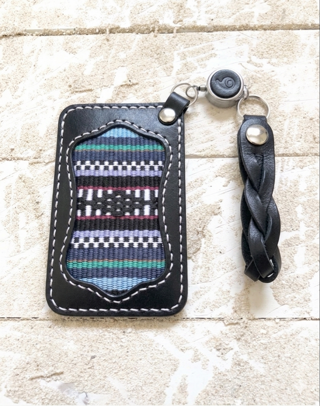 Passケース(定期入れ) リール&ストラップ付き ブラック 伊波メンサー織 (織物シリーズ)