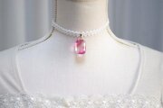 白のレースとリボンが上品で清楚な印象を与えるチョーカー。