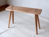 耳付とは丸太の自然の丸みを残して加工した材のことです。長方形の座面ですが横からの表情や木目の面白さが目を引きます。とてもスリムなサイズですので場所をとりません。ベンチ、飾り棚、テーブルなど使い方はたくさんありそうです。