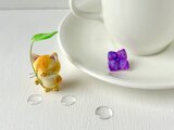 猫さん、葉っぱの傘、紫陽花の花びら、レジンのしずく、ソフトクリームの セットでお届けします。