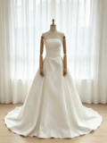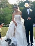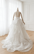 実例写真!ウェディングドレス ベアトップ ふっくら柔らかなバックリボン フレアスカート 拳式/前撮り