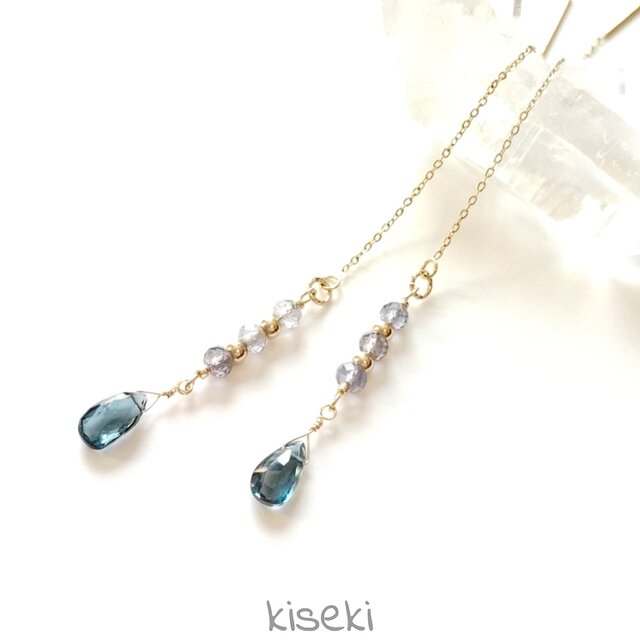 深みのあるグレイッシュなブルーが印象的なロンドンブルートパーズをメインにしたアメリカンピアスです☆